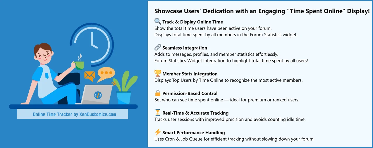 XenCustomize - Time Spent Online - Track & display users' total time spent online, boosting engagement and competition!